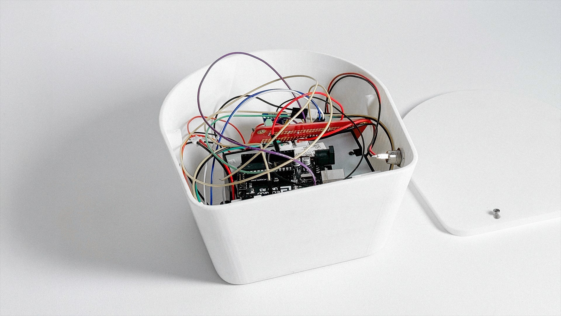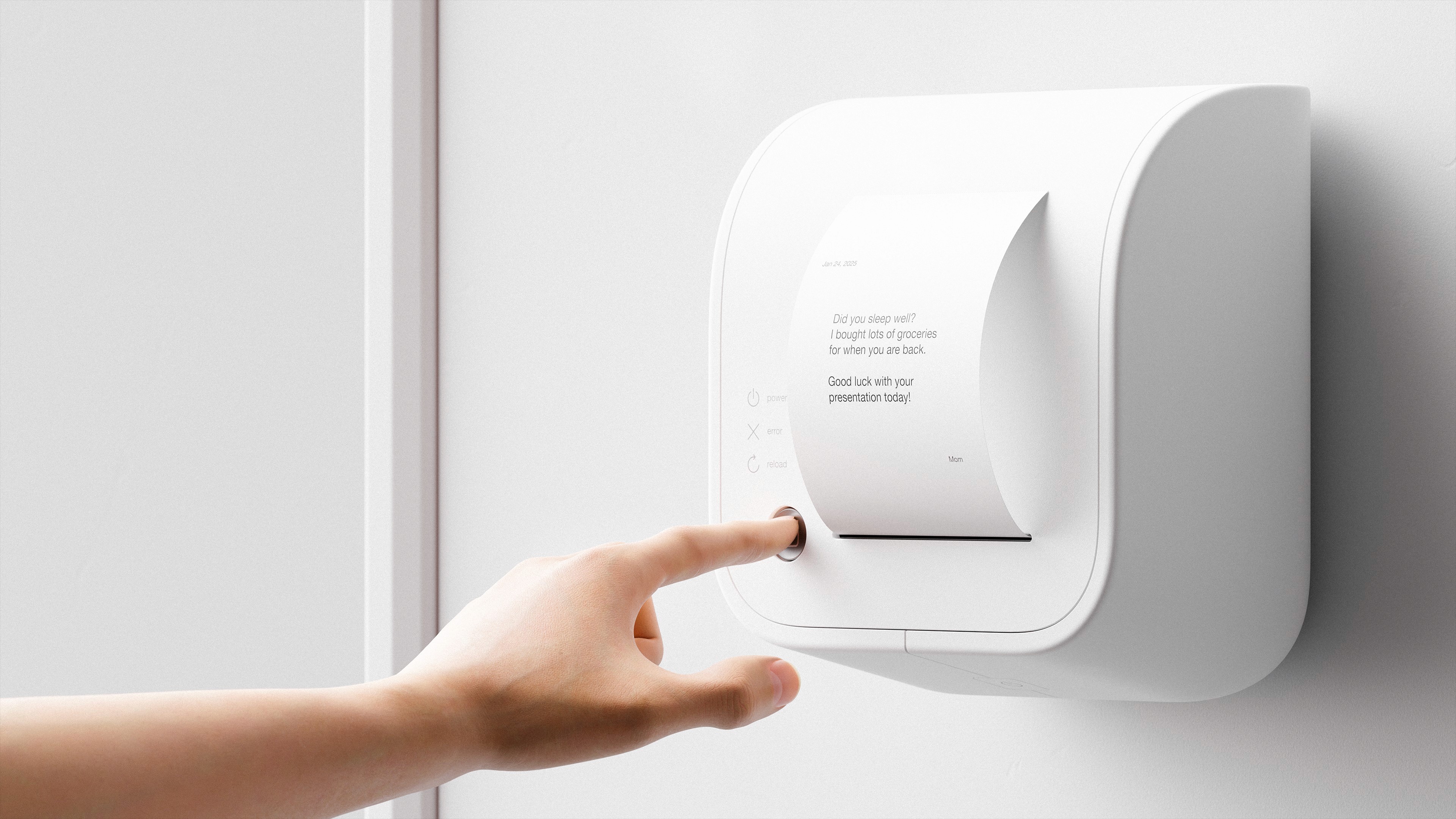 Inspired by the typewriter's interaction, Kioku's tactile button and paper message make users feel more grounded before they start their day.