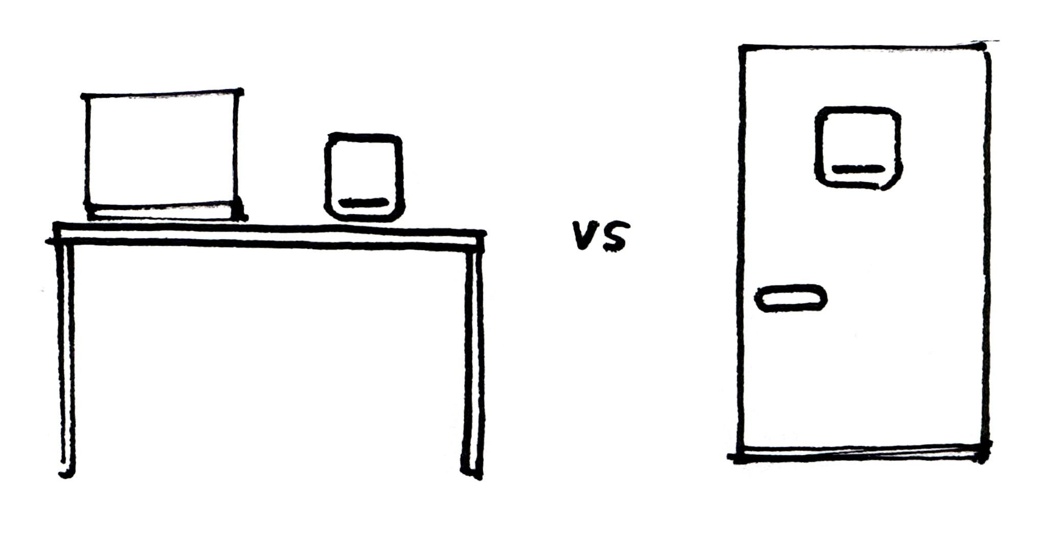 On a desk, Kioku competes with work for attention. On a door, the message is the focus.