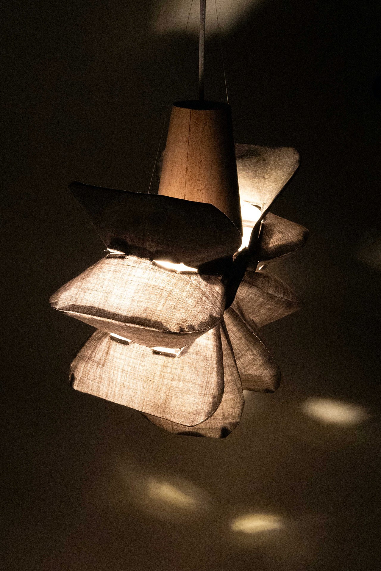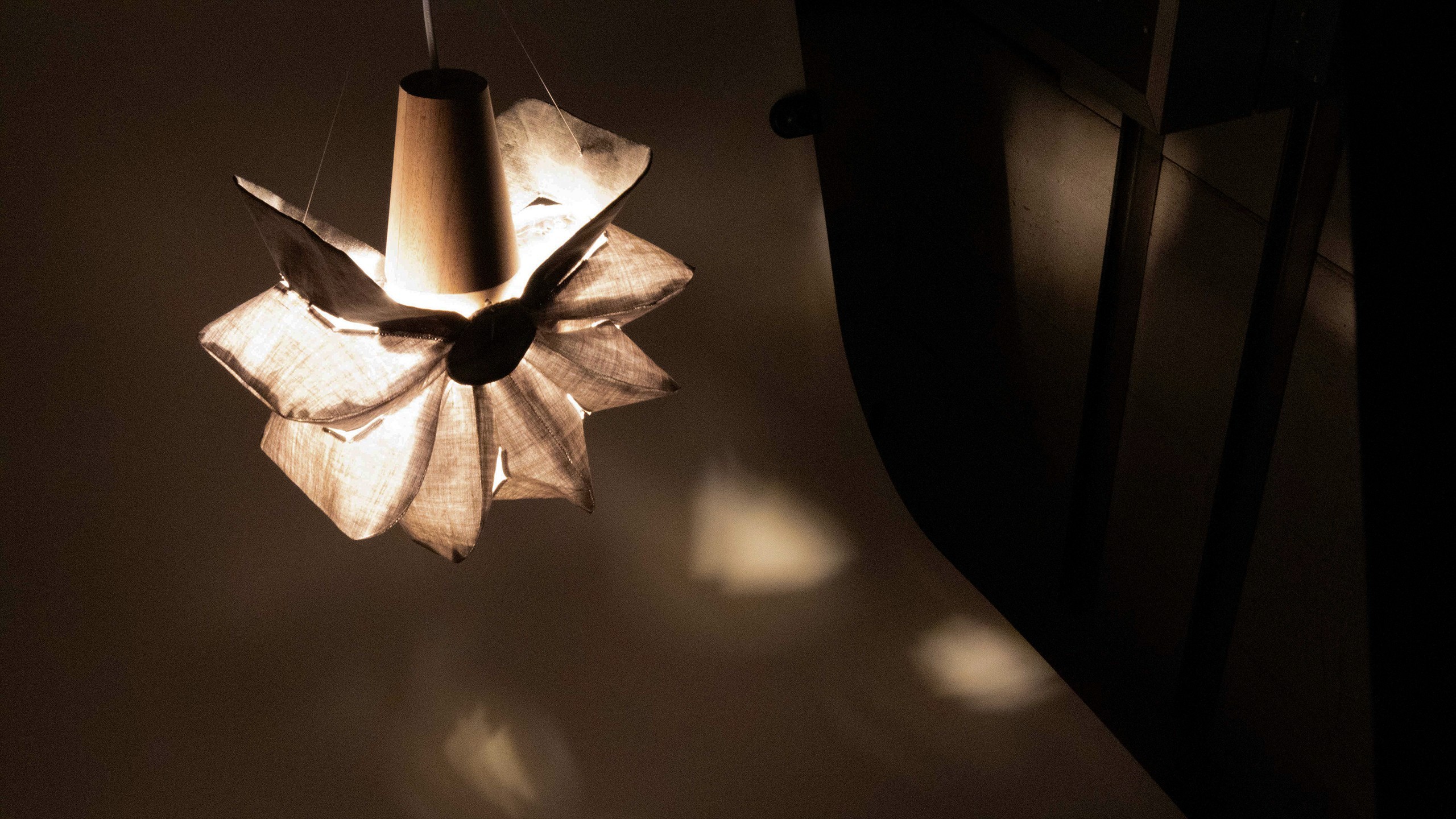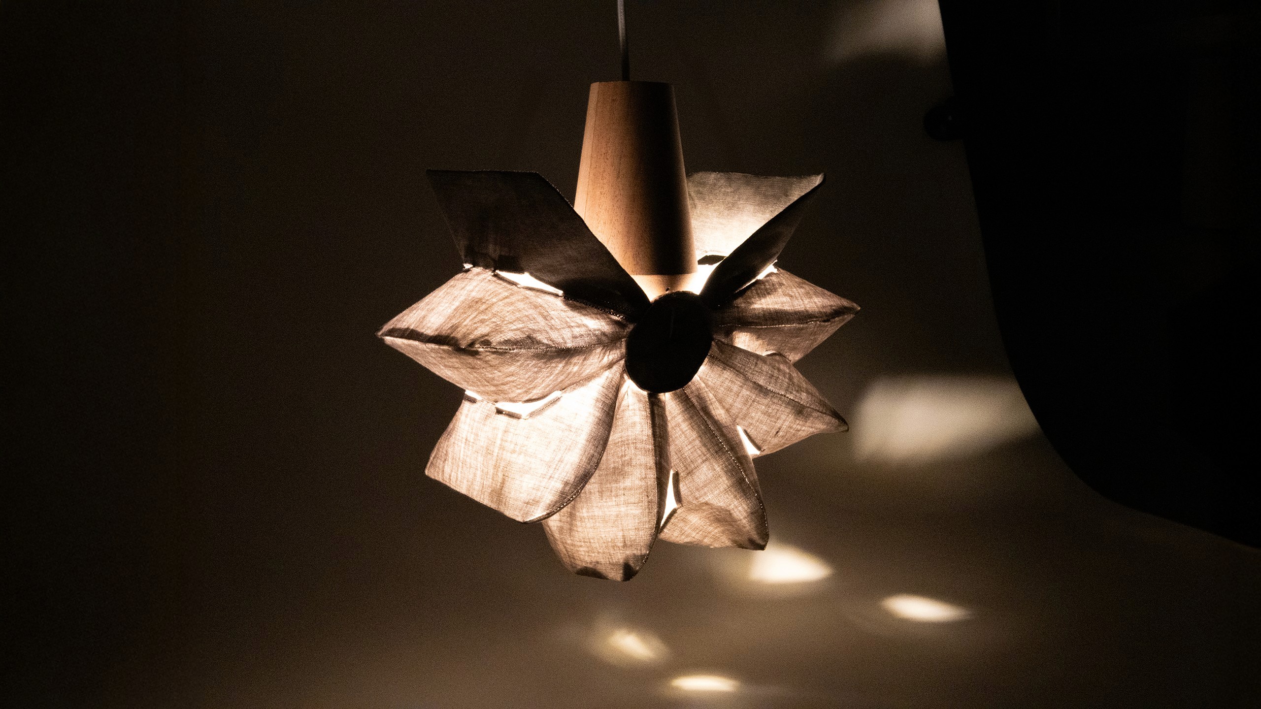 The lamp prototype opens and closes with pressure, letting users to adjust the light's dimness.
