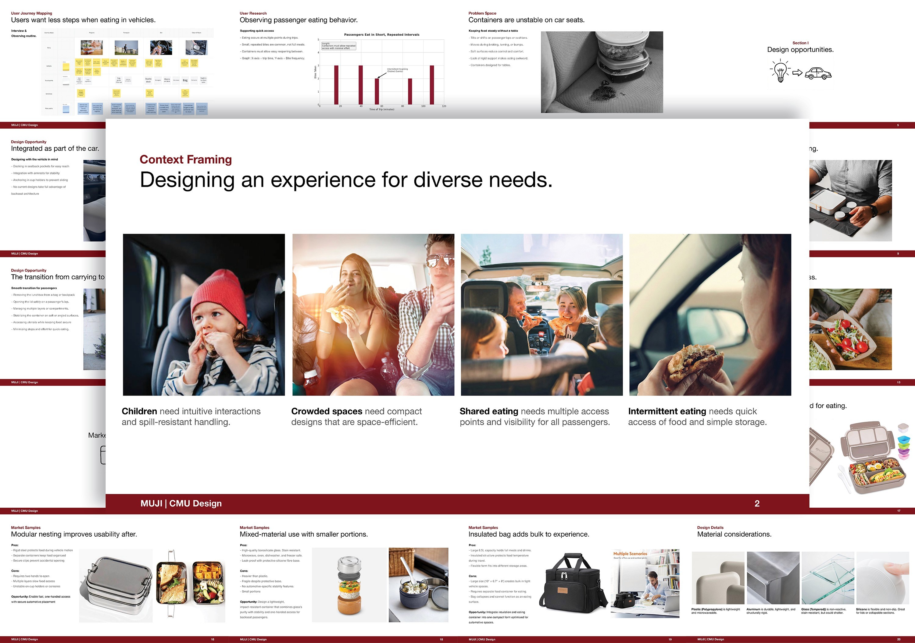 Eating in the car is compromised by motion and limited space. The MUJI Meal Box simplifies the experience into one intuitive flow, making meals on the go feel effortless and enjoyable.